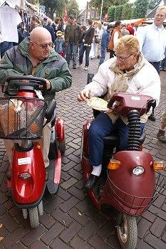 Foto: de LST-fractie trakteerde scootmobielers op de Unense Mert op pannekoeken met stroop
