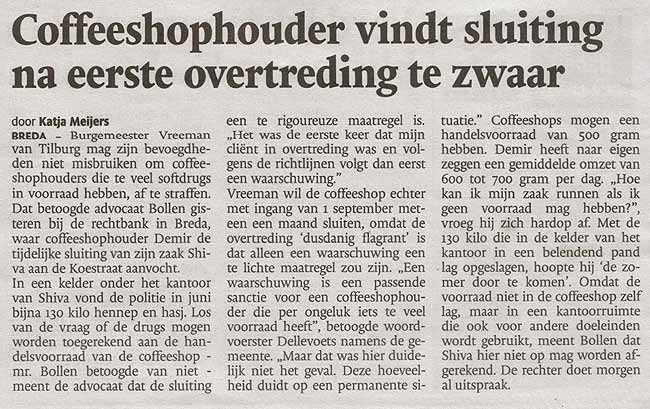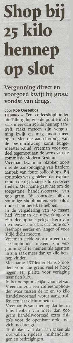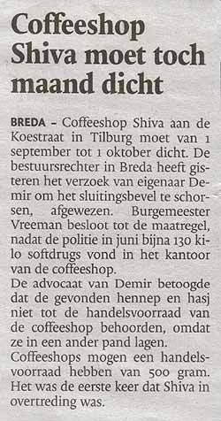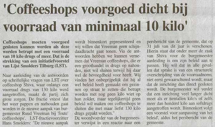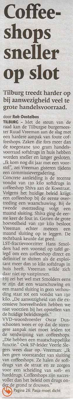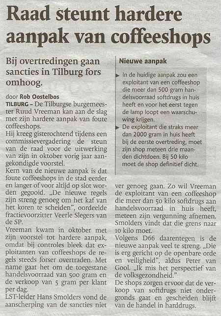 Dit alles terwijl in het Brabants Dagblad van 1 augustus j.l nog te lezen was dat Burgemeester Vreeman de 'foute coffeeshops' harder ging aanpakken!