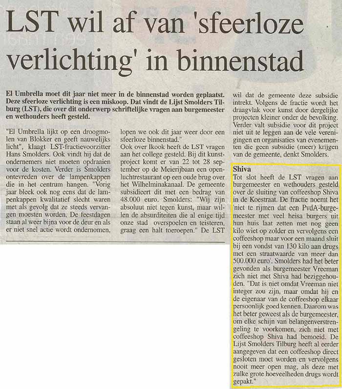 - Kent Burgemeester Vreeman persoonlijk de eigenaar van de coffeeshop Shiva?