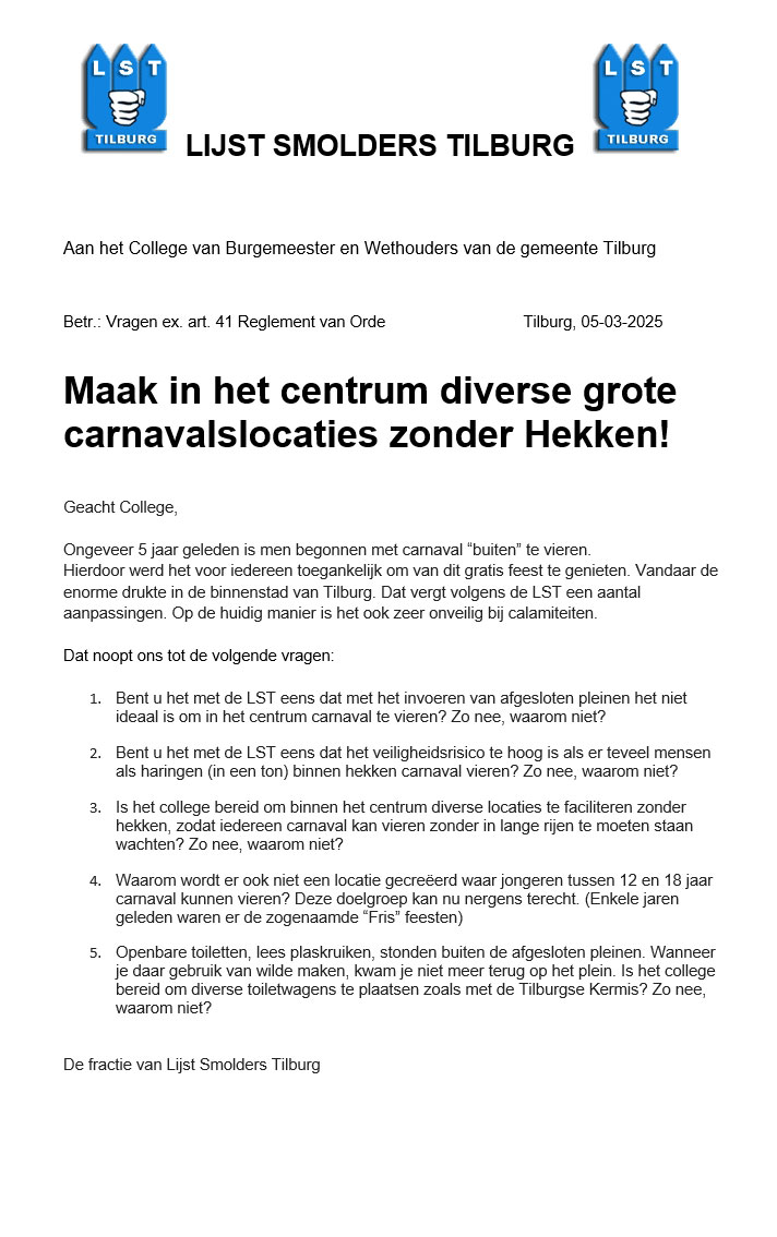 Copyright Lijst Smolders Tilburg 2013 - 2026