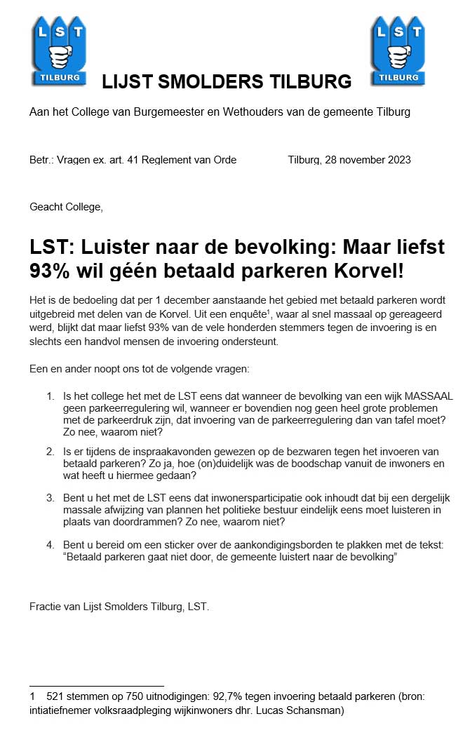 BETAALD PARKEREN IN GEHEEL TILBURG dat komt er op termijn.