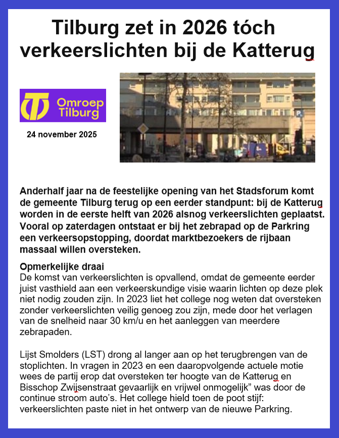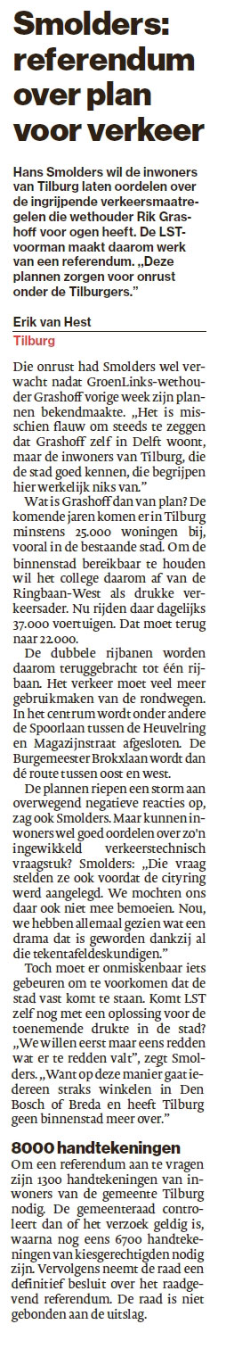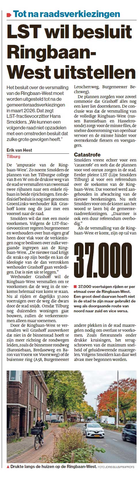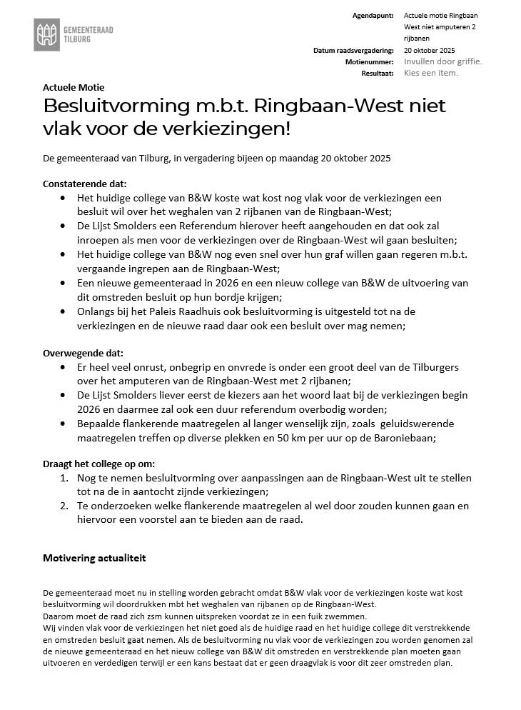 Meer over het halveren van de Ringbaan West, klik hier ; https://www.lijstsmolders.nl/ringbaan-west-amputeren.html